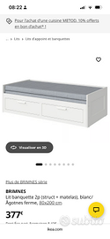 BRIMNES Struttura letto divano/2 cassetti, bianco, 80x200 cm con 2 materassi
