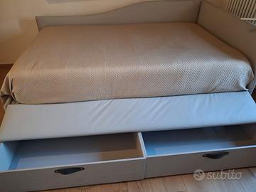Per Trasferimento urgente vendo letto 120x 190 una piazza e mezza, doghe in legno ortopedico cassettoni contenitore similpelle modello di design 6 mesi nuovo. Possibilita di materasso a parte. Prezzo trattabile. Si accettano anche proposte Ritiro e smontaggio a spese acquirente entro il 18 marzo. Antonella