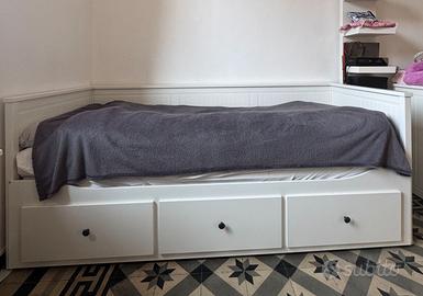 Vendo letto divano IKEA HEMNES colore bianco, completo di: • 3 ampi cassetti contenitori • 2 materassi VANNAREID (80x200 cm) in condizioni pari al nuovo • Doghe incluse • Struttura solida, tenuta con cura ⚠️ Smontaggio e trasporto a carico dell’acquirente.