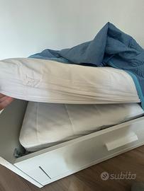 Letto Ikea dotato di due cassettoni. Diventa letto matrimoniale. Materassi nuovi. vendo per inutilizzo. il mio bimbo non ci ha mai dormito. Allego foto di dimensioni