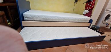 Vendesi letto doppio a scomparsa, completto di struttura struttura blu, materassi e doghe in legno. SOLO ritiro di persona a Battuda.