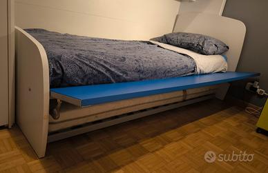 Vendo letto Moretti Compact colore bianco e blu, con rete a doghe senza materasso, tutto in ottime condizioni