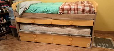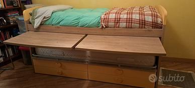 Letto doppio con doppia scrivania e cassetti per camera ragazzi+ consolle scrivania