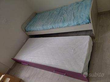 letto doppio compreso di entrambe i materassi. usato ma in buono stato. Dimensioni letto: Cm 199x62x88 Materassi sopra: 195x18x82 Materasso sotto: 190x14x78 la struttura in legno nella parte sottostante è leggermente crepata, ma non crea problemi.