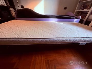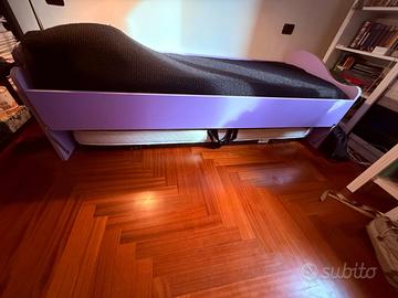 •Letto singolo indipendente color viola con cassetto estraibile che contiene un secondo letto (rete a doghe in legno. 📌 Note importanti •Il materasso superiore non è incluso, mentre materasso in lattice del letto inferiore è incluso • La struttura è in ottime condizioni. 📏 Misure principali •Letto: singolo standard (lunghezza struttura 190 cm) 💶 Prezzo leggermente trattabile