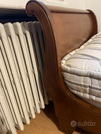 Bellissimo letto singolo dormeuse in noce in ottime condizioni con rete a doghe con topper e materasso (nuovo) fatto fare da azienda di treviso completamente in lana, misure del letto 240 x 100 x altezza 85 (tra la rete ed il materasso e’ stato realizzato un topper altezza 10 cm)) misura materasso 200 x 110 x 15 mai utilizzato (smontabile con 4 bulloni a vite)