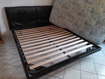 Letto matrimoniale (2 piazze), struttura in doghe. Testiera nera in ecopelle. Comodo e robusto. Opzionale il materasso Eminflex venduto a parte o insieme. Per info contattarmi.