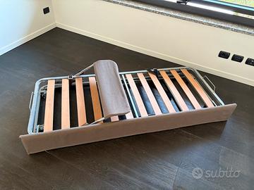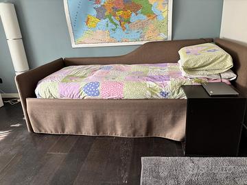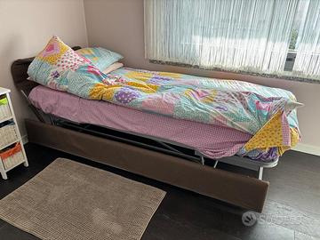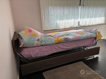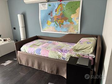 Letto Duetto: un letto trasformabile dal design semplice ed elegante. La struttura è rivestita in tessuto completamente sfoderabile e il piano di riposo è a doghe fisse. Il letto singolo diventa facilmente matrimoniale grazie all’aggiunta del secondo letto estraibile e sollevabile, grazie ai pratici pistoni a gas. Letto di marca e perfettamente conservato, condizioni pari al nuovo.
