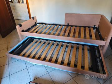 Letto Duetto Flou con letto estraibile. Le reti a doghe sono come nuove. Il rivestimento è da rivedere.