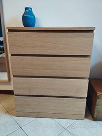 Vendesi letto ikea Malm con doghe 160 x 204 x 100 (altezza testata) cm e comó ikea Malm 4 cassetti 80 x 48 x h 100 cm.