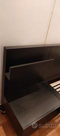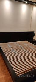 Vendo per trasloco letto IKEA MALM con doghe in legno (senza materasso). Inclusi comodini abbinati e mensole dotate di 4 faretti. Colore marrone-nero. Ottime condizioni. Letto già smontato e pronto per il ritiro. Misure letto: 176 × 211 cm (altezza 29 cm) Misure comodino: 50 × 42 cm (altezza 77 cm) Non spedibile. Ritiro a carico dell’acquirente.