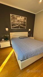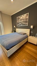 Letto matrimoniale comfort PERDORMIRE tipo “LUCREZIA”, con struttura interna contenitiva e piedini h15. Pelle bianca lavabile di qualita’ + due comodini sospesi IKEA con piano in vetro temperato e copertura laccata lucida. Si valuta anche vendita separata (purche’ ritiro e smontaggio presso la mia residenza Sesto San Giovanni). Prezzo struttura letto: euro 500,00 Prezzo comodini: euro 100,00