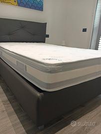 Letto 1 piazza e mezza in ecopelle in perfette condizioni con annesso materasso. Contenitore con sistema di sollevamento della rete molto pratico e funzionale. Misure 120 x 190 e altezza sponda 38 cm. Altezza testiera 107 cm (con cuscino applicato). Vendita causa sostituzione con letto matrimoniale due piazze.