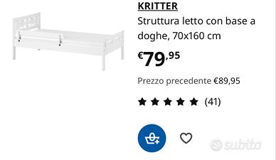 Vendo lettino IKEA completo di doghe e materasso. Usato poco, in buone condizioni.