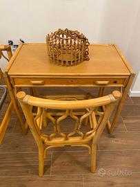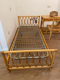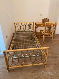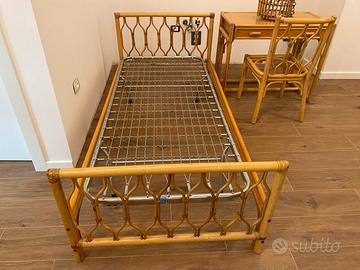 Mobili conservati molto bene e interamente in legno di Bamboo. Mobili vendibili anche separatamente. L'intero mobilio comprende letto, lampadario, scrivania e sedia. La fodera della sedia sta venendo cambiata e verrà installata non appena nuova. Il prezzo può essere abbassato se questo servizio non è apprezzato.