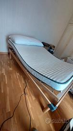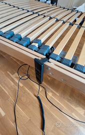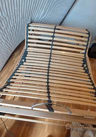 Letto a doghe di legno senza testiera, poco ingombrante, leggero, testa e piedi sollevabili da motorino facile da azionare. Altezza 38 cm + 11 col materasso. Compresi cuscino da 120 cm, copriletto e lenzuolo omaggio. Zona Montesacro