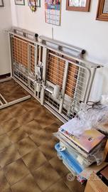 - Base ad altezza variabile da cm. 40 a cm. 80. Su tutta la superficie del piano d’appoggio a 4 sezioni è inserito un fondo in tondino d’acciaio a maglia elettrosaldata che offre un appoggio semirigido uniforme all’utilizzatore e trattiene il materasso nella sua posizione.