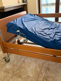 Letto elettrico Bongo Deluxe Wimed dotato di rete metallica e struttura in legno, con sponde laterali regolabili in altezza, blocchi ferma materasso per impedire movimenti durante l’utilizzo.