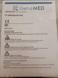 Vendesi letto elettrico, marca Reha Med, completo di triplo motore per alzare schiena e gambe, rete in doghe di legno, materasso in gommapiuma anti decubito.