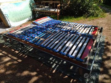 Letto matrimoniale in ferro con due doghe di cui una motorizzata con telecomando e una normale. È come nuovo, usato solo per un mese.