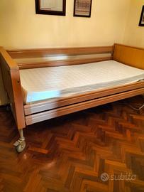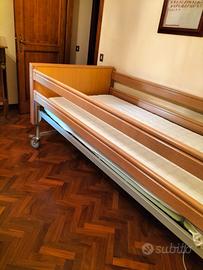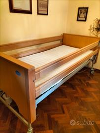 Vendo letto elettrico per degenza Mopedia Gardenia, con struttura in legno e telaio in acciaio. Il letto è motorizzato, regolabile in altezza e inclinazione tramite telecomando. Include:
