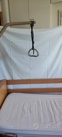 Vendo letto in legno con rotelle, dotato di sponde laterali, rete con telecomando, asta con triangolo, e materasso ad aria antidecubito.