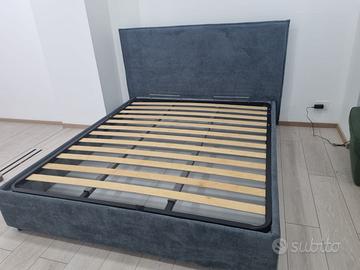 Letto imbottito in tessuto colore blu sfoderabile con contenitore , rete da cm. 160 x 190. Misure letto L. 170 H. 110 P. 200