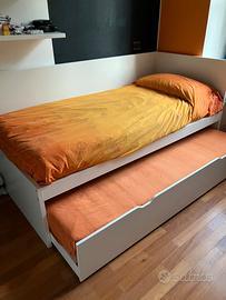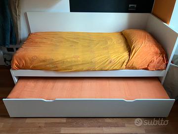 Letto bianco, con secondo letto a cassettone estraibile. Misure: 207 cm lungo, 97 centimetri largo, sponda alta 1 m. Ben conservato