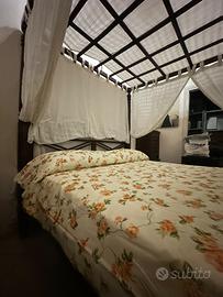 Vendo letto matrimoniale a baldacchino(materasso escluso) in legno massiccio stile etnico,acquistato 4 anni fa a 3,000€ ma é tenuto in ottime condizioni. Prezzo poco trattabile