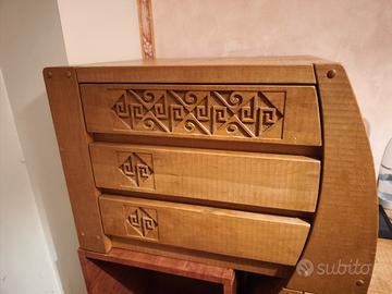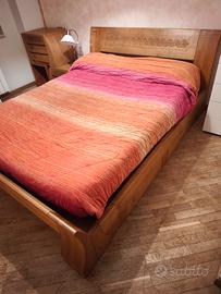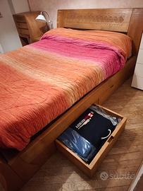 Vendo letto matrimoniale etnico con 4 cassetti e due comodini coordinati della linea Gaija degli Artesanos Don Bosco. La struttura e le doghe sono in legno massello di Lenga. Come indicato nelle foto le dimensioni della struttura del letto sono 170x230x95 (materasso 160x200), mentre i comodini sagomati misurano 64x44x44. Si vende senza materasso e smontato