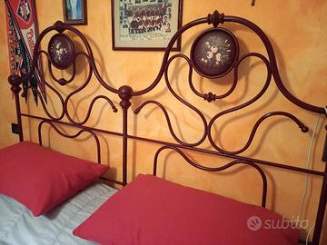 vendo letto matrimoniale antico in ferro dipinto a mano completo di rete metallica.