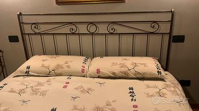 VENDO LETTO IN FERRO BATTUTO, PER CAMBIO CASA, TENUTO MANIACALMENTE, COMPRESO DI MATERASSO MATRIMONIALE E TOPPER. MISURE 200X170