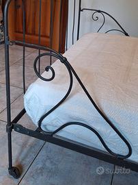 Vendo splendido letto antico in ferro battuto con ruote, oggetto di un completo lavoro di restauro. Il letto presenta una raffinata finitura antracite sabbiata.