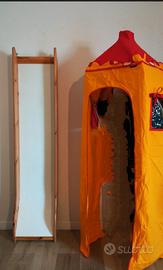 La scaletta è dotata di gradini antiscivolo e maniglie integrate e può essere posizionata su entrambe le estremità del letto, proprio come lo scivolo. Lo spazio sotto il letto è perfetto per riporre gli oggetti, o per creare un rifugio. I tessuti consentono di creare una sfera privata sotto il letto aggiungendo le tende da gioco. Sul letto è possibile posizionare la grotta.