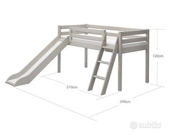 Il letto Flexa cresce con i bambini. infatti quando il bimbo cresce si trasforma in un comodo letto togliendo lo scivolo e la scaletta e aggiungendo le gambe corte al letto semi-alto. oppure ggiungendo le gambe alte al letto, puoi ricostruire il letto in un letto più alto. Possibilità di avere anche il secondo letto che puo' essere inserito sotto anche ad L.
