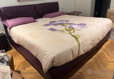Letto Flou Nathalie in pelle, come da foto, largo 208 cm, incluso materasso Flou da 200cm. Da smontare e ritirare a Milano.
