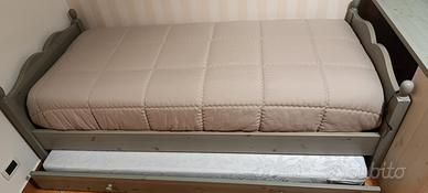 Vendo letto a 2 posti con 1 solo materasso (quello di sotto) marca lacedelli con la struttura tutta in legno massello misure : H 70 cm da Terra, lunghezza della struttura 198 cm e larghezza 90 cm .