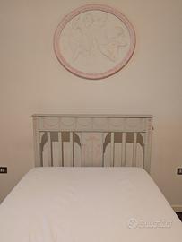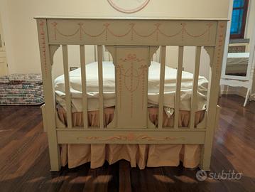Raro letto francese del XVIII secolo (1700), realizzato in legno verniciato e arricchito da eleganti ghirlande in rilievo in pastiglia rosa, tipiche della tradizione decorativa dell’epoca. Un autentico pezzo d’antiquariato che coniuga fascino storico e raffinatezza, perfetto per valorizzare camere da letto classiche o shabby chic di pregio.