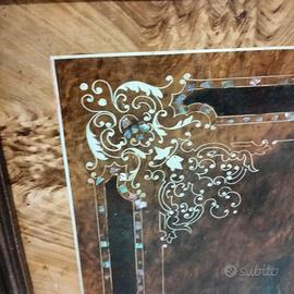 Letto matrimoniale in fusione di ghisa, fine '800 napoletano, originale e perfetto come da foto. Inserti in madreperla laccata in testiera e pediera.