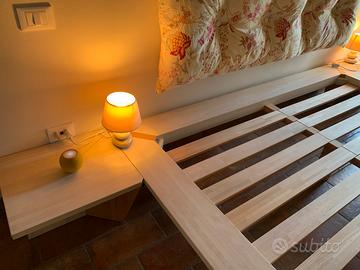 Camera da letto giapponese Arpel Origami composta da letto giapponese in faggio lamellare e due comodini sempre in faggio. Il letto è interamente smontabile e puo stare in un auto normale.