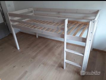 letto bianco, come foto nr 2 e 3, la foto 1 mostra le tendine x lo spazio gioco. ora smontato, è completo di tutte le viti e bulloni, in buone condizioni, vendo x cambio letto. usato solo 5 anni. poco rovinato. Solido, in legno, ha una scaletta solida. le tendine gioco sono 4 , 2 lato lungo e 2 lato corto, hanno tasche, finestre trasparenti e tendine. il materasso da usare ha misura 90x200. non spedisco, è troppo complicato. Pagato 380, vendo a 100€. solo ritiro a Rivolta d'Adda Cr - scrivetemi solo via whatsapp o telegram. no telefonate, grazie