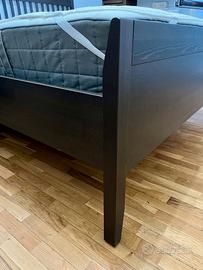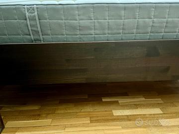 Vendo struttura letto IDANÄS IKEA, marrone scuro trattato con mordente, 160x200 cm: pino massiccio con impiallacciatura, testiera alta 112 cm a doghe verticali, pediera 63 cm, gambe affusolate.
