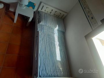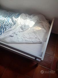 Struttura letto con base a doghe bianco,70x160 cm con sponda resistente anticaduta, comprensivo di materasso e topper, come nuovi !!!