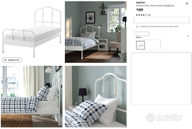 Vendo letto Sagstua Ikea in metallo bianco utilizzato pochissimo come nuovo. Viene venduto già smontato con la sua rete a doghe