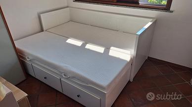 vendo letto ikea bianco tre cassettoni con letto estraibile e due materassi nuovi. il letto è già smontato, provvisto di tutte le viti originali e doghe.
