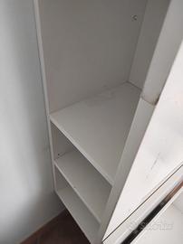 bianco, modulo con ripiani dietro testiera e 4 cassettoni a scomparsa.