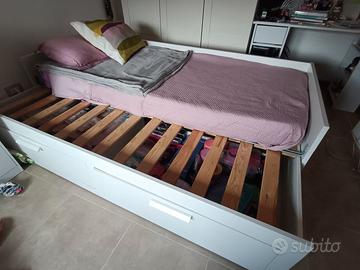 Letto Ikea Brimnes, bianco.con doppia rete (diventa matrimoniale) e cassettoni molto capienti. Ha pochi mesi. Nuovissimo. Vendo per cambio stanza. Regalo anche materasso. Tutto in condizioni perfette. Smontaggio e ritiro a carico dell acquirente.