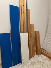 Vendo Letto singolo Ikea in condizioni pari al nuovo. Struttura in legno massello di abete con pannelli bianchi o blu ( si puo montare da entrambi i lati). Ha una struttra che permette di montarlo sia alto, sollevato circa 1 dal pavimento, che basso come i letti normali. Montato in alto permette di ricavare un ampio spazio sotto. Adatto per bambini e ragazzi, abbastanza solido e robusto tiene oltre 100 kg.