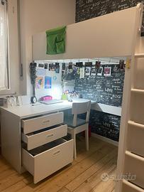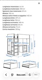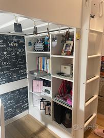 Letto soppalco IKEA in ottime condizioni. La scaletta si puo montare solo da qul lato. Versione con libreria. Il materasso non è incluso. Da smontare