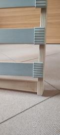 Struttura letto Ikea con rete in doghe senza materasso, rete sottoletto estraibile in metallo con doghe larghe in legno più materasso in Memory.. ruote consigliate da 10/12 cm.. la rete è fornita di piedi ancora imballati, utilizzata con ruote ( rovinate ed eliminate) il letto principale presenta alcuni graffi da usura ma la struttura è integra.
